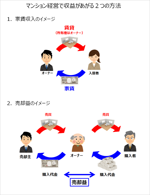マンションオーナーが収益を出すには、投資用マンションを購入する必要があります。投資用のマンションを活用して、収益を出すには、下記の2つの方法があります。