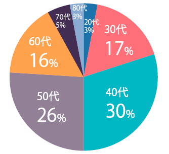 実際に日本財託では、下記のような30~60代を中心に幅広い年齢層の1.1万人以上のマンションオーナー様が不動産投資に取り組んでいます。
