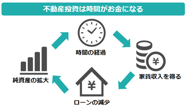 不動産投資はマンションオーナーが労働しなくても、時間の経過とともに「入居者が支払う家賃」が自動的にローンを減らし、純資産を拡大してくれる仕組みです。