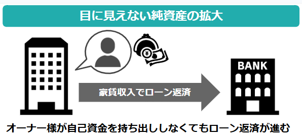 つまり、自分のお金を使わないで借金を返済できており、ここに「目に見えない純資産の拡大」があるのです。