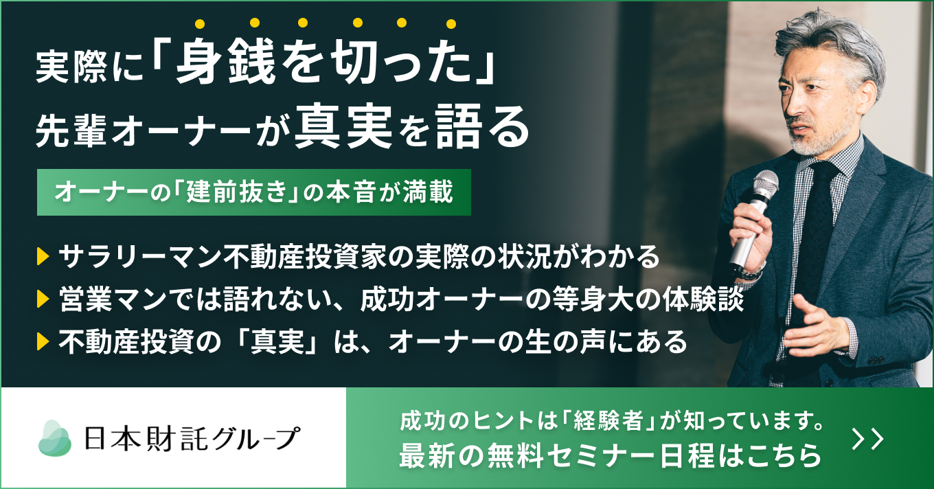 私ども日本財託の推奨する「東京の中古ワンルームに投資する手法」を使って、実際に多くの人が結果を出しています。当社では、そんな再現性の高い「不動産投資の始め方」を知ることができる無料オンラインセミナーを毎日開催しています。
