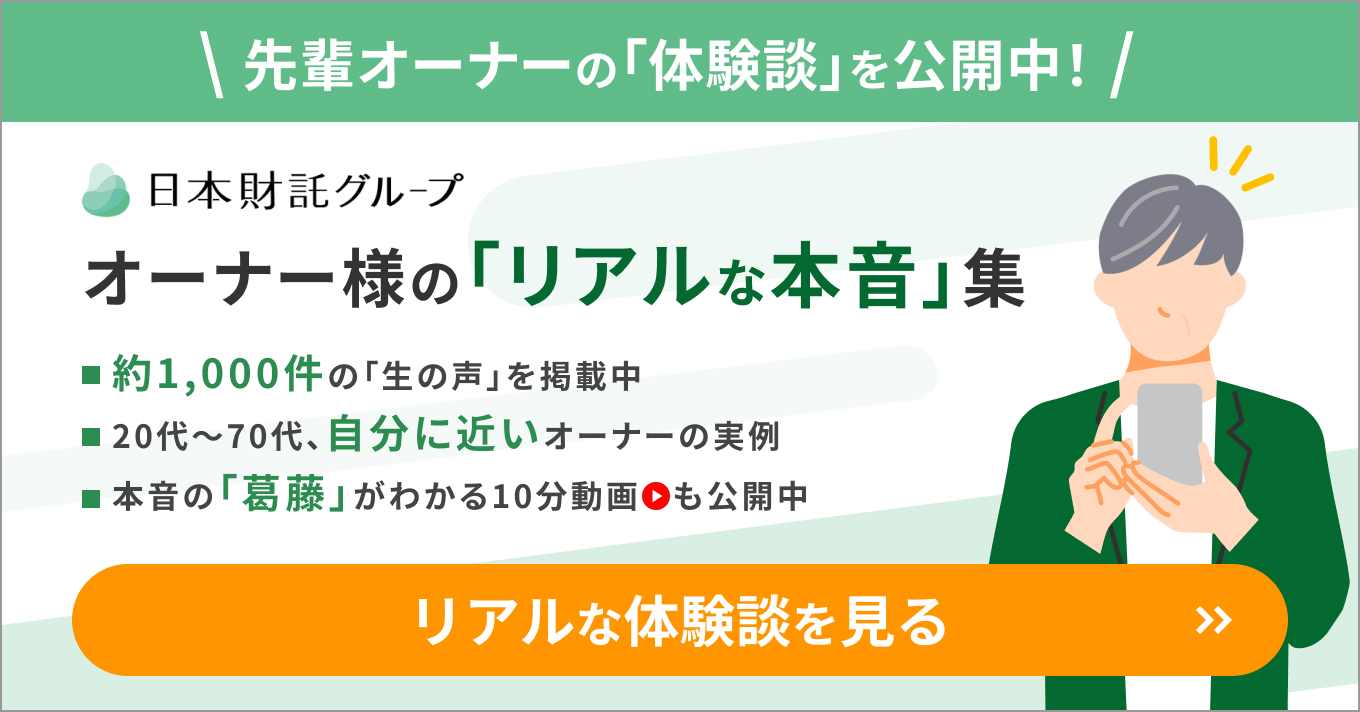 私たち日本財託は、「デメリットが気になる」「リスクが怖い」というオーナー様の不安を一つひとつ解消して、納得した上で一歩を踏み出していただけるためのサポートをいたします。