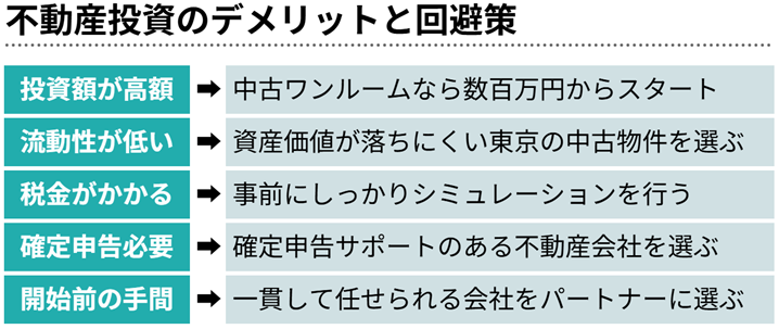 不動産投資のデメリットやリスクを回避する方法はズバリ、「東京の中古ワンルーム×繰り上げ返済」です。なぜならば、圧倒的な単身者需要が今後も続く東京で、新築よりも価格が落ち着いた中古ワンルームを購入して、入居者の家賃と自己資金を合わせた「2人の力」で借入を早期に解消していくのが、リスクコントロールの最適解と言えるからです。