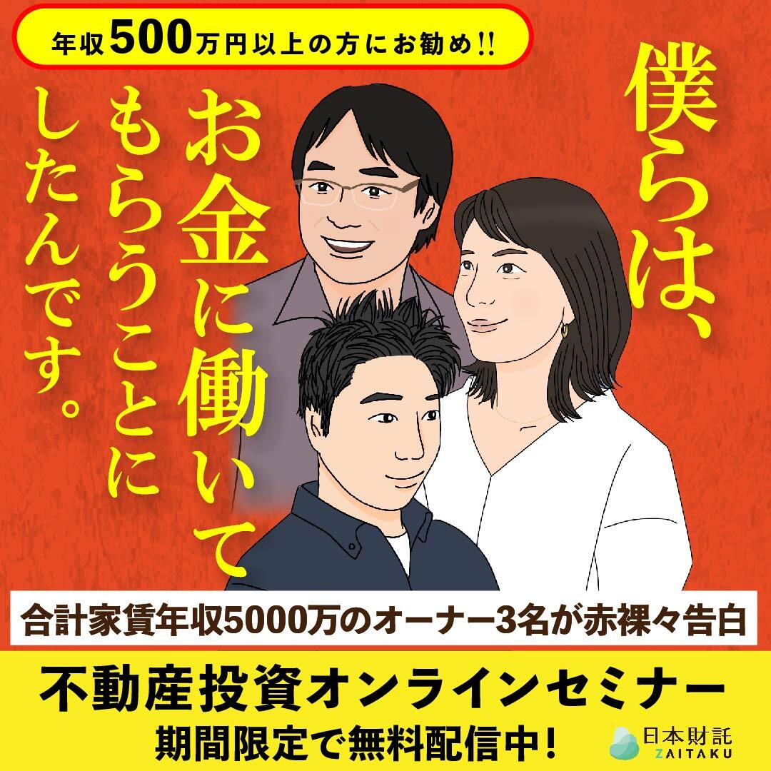 本番組の出演者は、まさに普通の会社に勤める同僚の3人でした。「金持ち上司」の村野さん、「貯金大好き」な大山さん、「お金=悪」だと考えていた段さん。 3人のリアルな不動産投資体験談を基に、お金持ちの「働かずに儲ける」思考法と、実際の投資収支等について語っていただきます。
