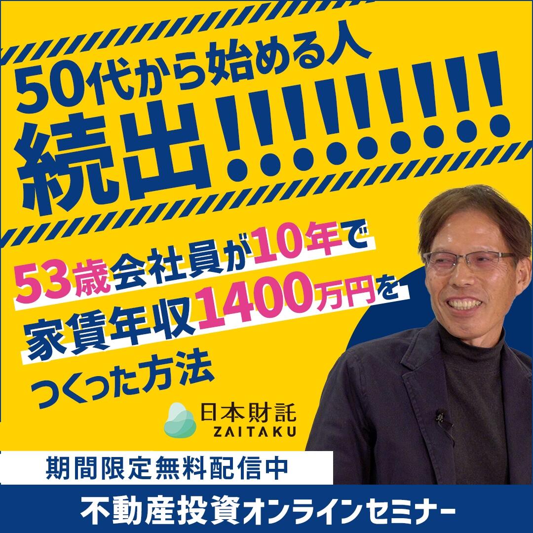 登壇者である木下氏は53歳で不動産投資をスタートさせ、家賃年収1,400万円までたどり着きました。 今回は、木下氏が提唱する50代からの不動産投資戦略について、木下氏と二人三脚で資産形成のサポートをしたコンサルタント田島との対談で明らかにしていきます。